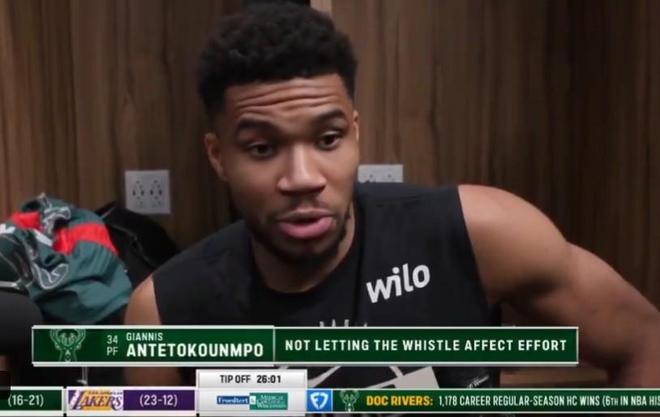 • 字母哥:我倒地通常是有人推我或者打我臉,為什么裁判不吹?