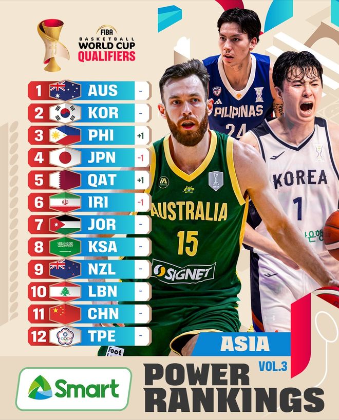 • 世預賽第二窗口期亞洲區(qū)實力榜:中國男籃第11,僅高于中國臺北