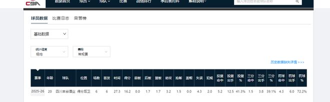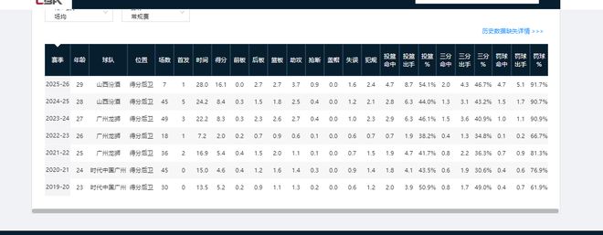 作為選秀球員,截至25-26賽季,賈明儒已累計征戰(zhàn)CBA7個賽季。前6個賽季,他單賽季的場均出場時間就沒超過9分鐘,得分數(shù)也未上過雙。但本賽季,賈明儒已打成山西隊次主力控衛(wèi)。