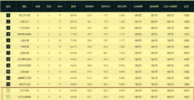 遼籃這個賽季前9場比賽取得4勝5負的成績。九輪過后一看排名竟然已經跌出了前十二,排在第13名,竟然跟第14名的吉林老鐵成了難兄難弟,簡直讓人大跌眼鏡??!