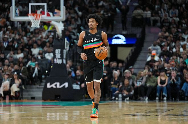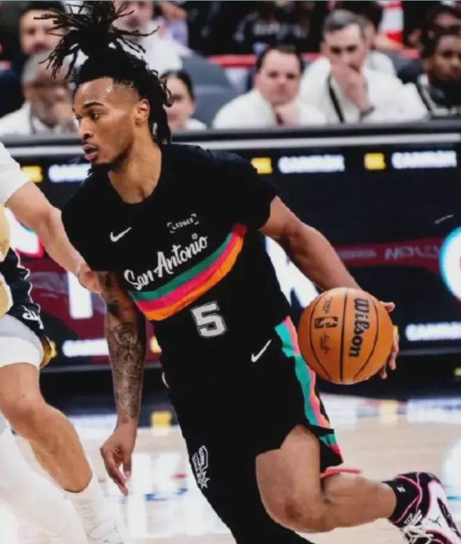 全場數(shù)據(jù),馬刺隊這邊,??怂?9中10得到24分7籃板4助攻;榜眼哈珀表現(xiàn)搶眼,15投9中,狂轟22分2籃板2搶斷1蓋帽;凱爾登-約翰遜9投6中,其中三分球3投3中,砍下16分6籃板1助攻。