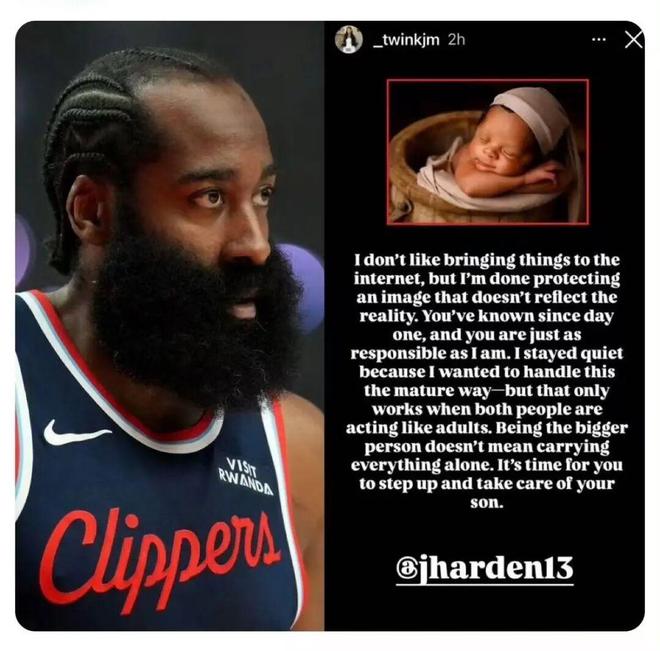 美麗的童話故事還沒說上倆月,就轉成限制級了...一位名叫凱爾西的女子在Instagram上直接喊話哈登:“是時候站出來,承擔起對兒子的責任了! ”