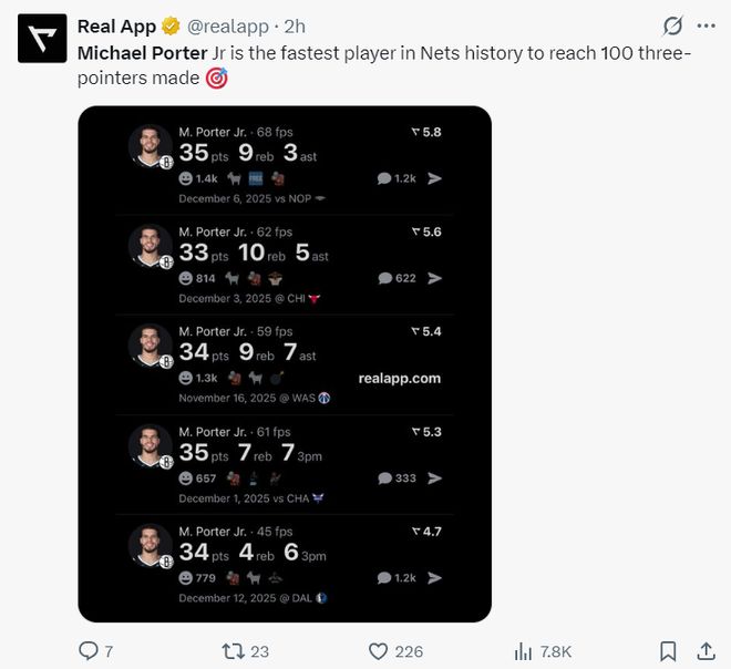 籃網(wǎng)官方也寫道,小波特加盟球隊(duì)后已經(jīng)拿到了三場(chǎng)25+10+5的數(shù)據(jù),這是在掘金生涯非常罕見的存在,而且小波特加盟籃網(wǎng)27場(chǎng)已經(jīng)已經(jīng)拿到698分是隊(duì)史第六高的。
