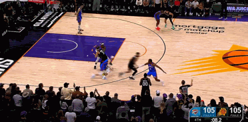 最后8.2秒,奧尼爾成功解決了世界性難題——邊線發(fā)球。布克接球后,手握雷神之錘,面對(duì)雷霆倆個(gè)瘋狗式防守的卡魯索和多特,3分線外強(qiáng)行干拔,一劍封喉,絕殺雷霆。
