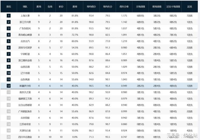CBA積分榜