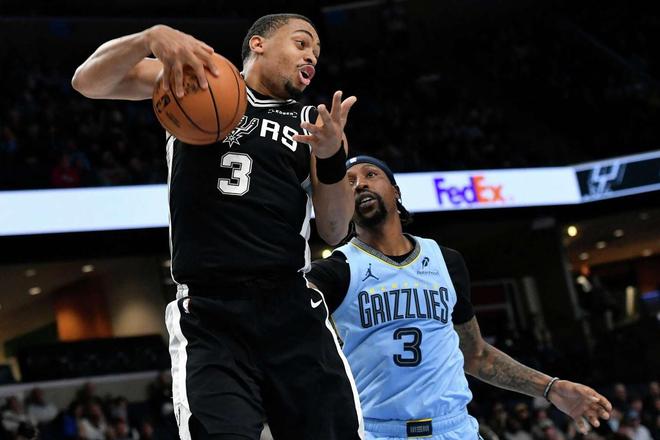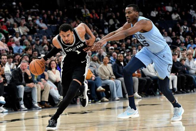 北京時(shí)間1月7日,NBA常規(guī)賽繼續(xù)火熱進(jìn)行。馬刺奔赴客場(chǎng)與灰熊展開對(duì)決,該場(chǎng)比賽,是雙方本賽季的第三次交手。前兩戰(zhàn)都取得了勝利的圣安東尼奧,在此役還迎來(lái)了文班亞馬的傷愈復(fù)出。米奇約翰遜的首發(fā)五虎是卡斯?fàn)枴⒏?怂埂⑸信聊?、科?nèi)特與巴恩斯,文班亞馬、哈珀繼續(xù)出任替補(bǔ),瓦塞爾傷停。孟菲斯的首發(fā)五人是小賈倫杰克遜、蘭代爾、斯潘塞、韋爾斯與GG杰克遜。賈莫蘭特、科沃德、扎克埃迪、小皮蓬、杰羅姆、克拉克、康查爾7人傷停。4連敗的孟菲斯,期待觸底反彈。盡管人員不整,灰熊眾將依舊展現(xiàn)了頑強(qiáng)的斗志。