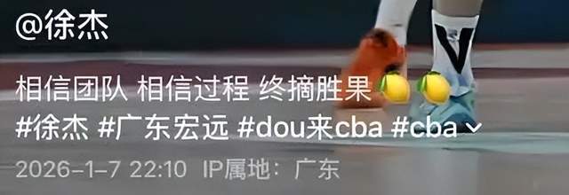 此役,徐杰的表現(xiàn)堪稱"低開(kāi)高走"。受感冒和腳踝傷勢(shì)影響,這位身高僅183cm的后衛(wèi)在常規(guī)時(shí)間表現(xiàn)平平,但在決勝時(shí)刻,他用一記標(biāo)志性的打板拋投終結(jié)比賽懸念。賽后,徐杰在社交媒體曬出視頻并配文"相信團(tuán)隊(duì),相信過(guò)程,終摘?jiǎng)俟?,展現(xiàn)出超越年齡的成熟。