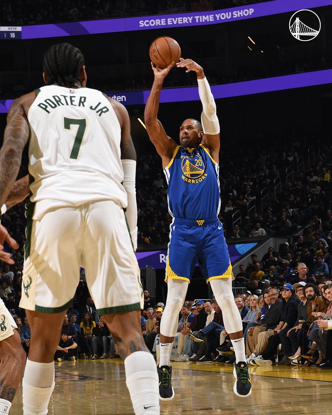 勇士隊的庫里上半場得到14分和4次助攻,梅爾頓得到11分,穆迪和普斯特各得到9分;雄鹿隊的字母哥得到18分和4個籃板,波特得到11分。