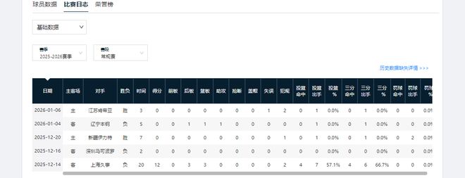 上賽季效力江蘇隊期間,崔曉龍屬于球隊主力輪換,場均可獲18.9分鐘的出場時間,以及7次出手機(jī)會。本賽季12輪過后,他僅代表上海男籃出場4次,單場最多出場時間10分鐘,最少5分鐘,場均出場7.5分鐘,戰(zhàn)術(shù)地位很低。