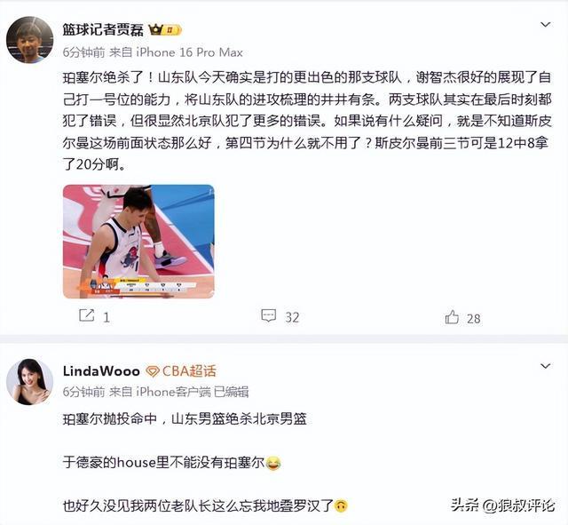 媒體人“盛哲”發(fā)文點(diǎn)評(píng):山東絕殺首鋼,收獲5連勝。