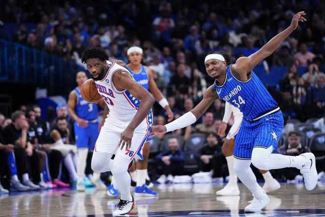 中場休息回來,76人完成本場首次單節(jié)得分30分,魔術被限制連續(xù)三節(jié)得分不足30分。雙方持續(xù)交替領先纏斗至76人62-63落后,76人連得5分反超比分,布萊克三分命中。76人一波6-0攻勢擴大優(yōu)勢,魔術追到差3分,76人連得5分擴大8分優(yōu)勢。魔術回敬一波7-3攻勢追分,76人單節(jié)30-25凈勝5分,三節(jié)結束76人83-79反超魔術。前三節(jié)比賽,76人三分僅22中3,馬克西20中9得到26分、恩比德14中5得到18+7、巴洛11+8;魔術三分僅22中4,班凱羅12+9+7引領魔術4人得分上雙。