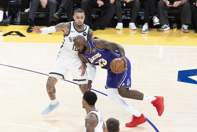 第二節(jié)雙方輪換陣容階段,兩隊(duì)還是難解難分,雙方互相罰球以后,雄鹿反超比分。斯瑪特連中三分以后,波蒂斯內(nèi)線得分,哈里斯三分再中,44-39湖人暫停。但暫停以后,雄鹿還在進(jìn)三分,東契奇2+1止血。不過湖人的防守是真的差,雄鹿一度領(lǐng)先到了12分。老詹三分止血以后,又反擊一條龍暴扣。半場(chǎng)結(jié)束湖人52-61落后9分。