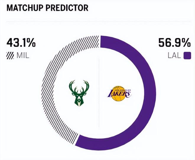 賽前,美媒ESPN對(duì)本場(chǎng)比賽進(jìn)行了勝率預(yù)測(cè),湖人隊(duì)勝率高達(dá)56.9%,雄鹿隊(duì)勝率則僅有43.1% ,差距非常明顯。