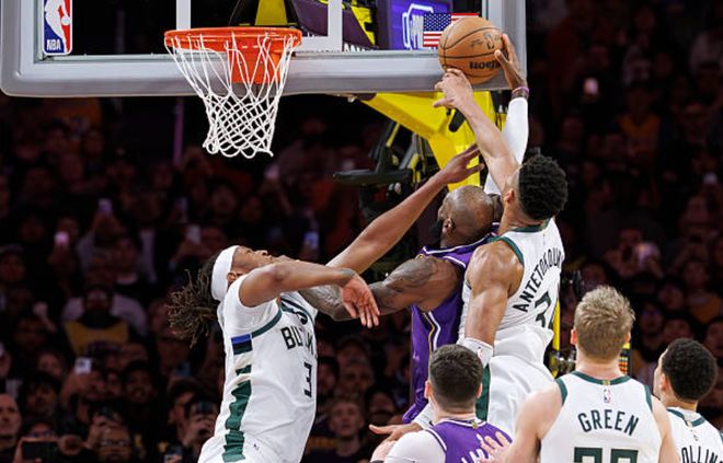 最后40.5秒,字母哥對詹姆斯的上籃嘗試進行了合法封蓋。(注:報告上沒有提到打到詹姆斯手的特納)