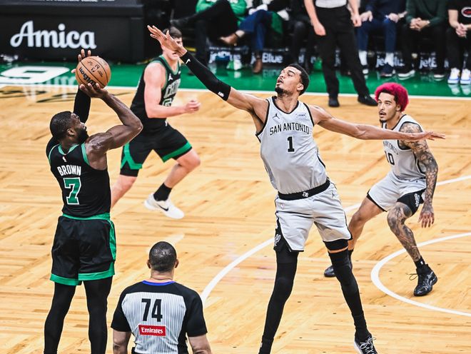 縱觀全場(chǎng)比賽,有三個(gè)直觀感受。第一,不太理解凱爾特人在自家主場(chǎng),全場(chǎng)比賽只拿到4次罰球,其實(shí)馬刺犯規(guī)不算多,凱爾特人也是一支非常依賴三分投射的球隊(duì),但包括布朗和懷特在內(nèi),其實(shí)對(duì)內(nèi)線殺傷力都不太夠,三分手感會(huì)有起伏,布朗有中距離,但被馬刺整個(gè)防守體系給逼出效率最高的區(qū)域,他們打得很亂。特別是銜接段,確實(shí)是到了無人可用的地步。第二,馬刺的主帥米奇是真“大膽”。把官方MVP前五的文班亞馬,就放在替補(bǔ)席,12月份復(fù)出時(shí)就是如此。