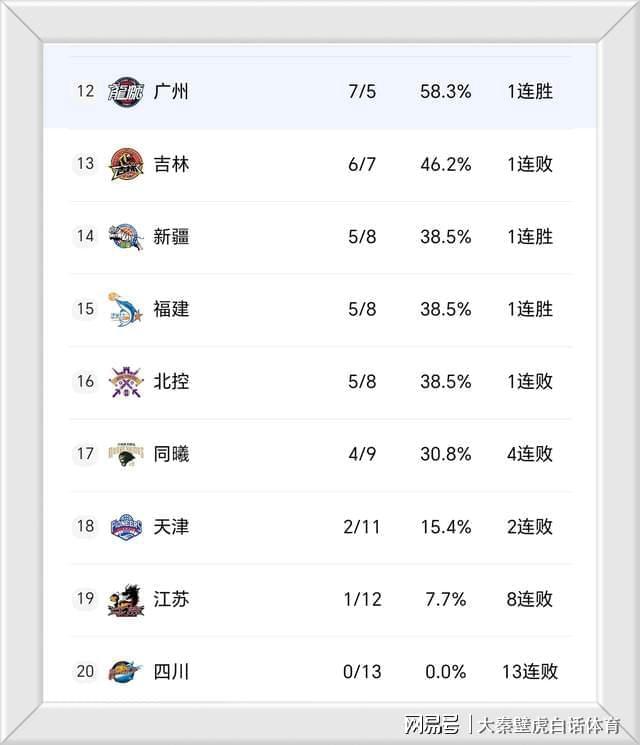③、遼寧慘敗跌出前八,最新排名第10位。