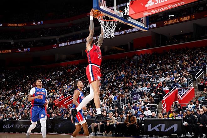 在上賽季的NBA常規(guī)賽中,科林斯受到傷病的影響在82場比賽中總共只代表老東家猶他爵士出場40次,場均出場時間達(dá)到了30.5分鐘,場均數(shù)據(jù)為18.9分8.2籃板2助攻1搶斷1蓋帽,還有2.6次失誤和2.9次犯規(guī),投籃命中率52.7%,三分命中率39.9%,罰球命中率84.8%。在此前的NBA季前賽中,科林斯總共出場4次,場均出場時間達(dá)到了17分鐘,場均數(shù)據(jù)為12分3.8籃板0.5助攻0.2搶斷0.5蓋帽,還有1.5次失誤和1.2次犯規(guī),投籃命中率59.3%,三分命中率57.1%,罰球命中率85.7%。本賽季開季至今,科林斯在前38場比賽中總共出場37次,場均出場時間達(dá)到了27.4分鐘,場均數(shù)據(jù)為13.3分5籃板0.8助攻0.9搶斷0.9蓋帽,還有1.4次失誤和2.6次犯規(guī),投籃命中率54.9%,三分命中率41%,罰球命中率80.2%。
