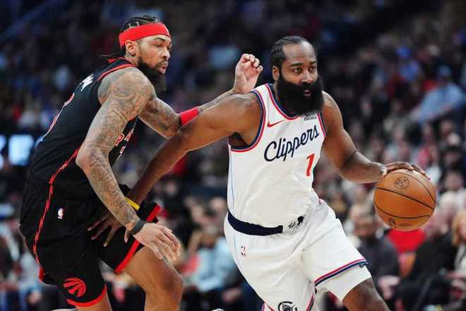 北京時(shí)間1月17日,NBA常規(guī)賽快船客場(chǎng)對(duì)陣猛龍,萊昂納德因傷缺席無(wú)緣戰(zhàn)舊主??齑谧疃嗦浜?4分情況下,哈登攻傳結(jié)合率隊(duì)持續(xù)反撲,第四節(jié)最后時(shí)刻哈登連續(xù)關(guān)鍵得分追平,但哈登錯(cuò)失壓哨絕殺。進(jìn)入加時(shí)賽,哈登連續(xù)命中關(guān)鍵球,最終快船121-117加時(shí)戰(zhàn)勝猛龍豪取5連勝,快船近14戰(zhàn)12勝,快船反超灰熊升西部第十進(jìn)入附加賽區(qū)域。