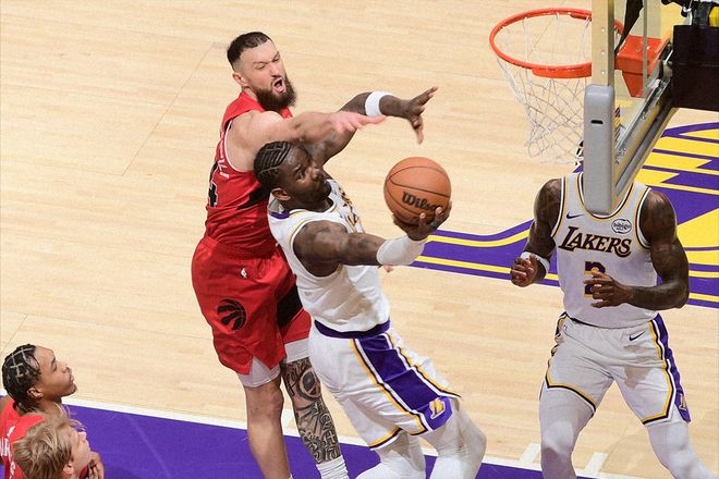 但或許是昨天湖人隊的一場慘敗,讓他意識到球隊的危險處境。又或者,今天的對手,是詹姆斯的‘老熟人’。別的不說,對上猛龍隊,詹姆斯幾乎沒有手軟過。雖然連續(xù)得分上雙紀錄就是被猛龍隊終結的,但那一場比賽詹姆斯助攻八村塁完成絕殺。