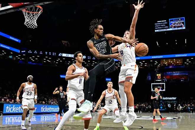 北京時(shí)間1月20日,NBA常規(guī)賽太陽(yáng)客場(chǎng)對(duì)陣籃網(wǎng),其中籃網(wǎng)是背靠背第二場(chǎng)。太陽(yáng)在布克與狄龍引領(lǐng)下逐步擴(kuò)大20分領(lǐng)先優(yōu)勢(shì),籃網(wǎng)持續(xù)反撲在末節(jié)一度追到僅差4分,狄龍與奧尼爾接連三分命中重新擴(kuò)大優(yōu)勢(shì),最終太陽(yáng)126-117戰(zhàn)勝籃網(wǎng)收獲2連勝,籃網(wǎng)遭遇2連敗。