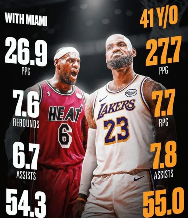 自從41歲生日夜以來,詹姆斯場(chǎng)均可以轟下 27.7分、7.7個(gè)籃板和7.8次助攻,投籃命中率高達(dá)55.0%,這一數(shù)據(jù)甚至超過了他熱火時(shí)期的巔峰表現(xiàn);他連續(xù)9場(chǎng)比賽得分超過20分,創(chuàng)造了40歲后NBA歷史最長(zhǎng)連續(xù)得分20+紀(jì)錄;41歲場(chǎng)均得分榜,詹姆斯同樣以22.6分排名歷史第一。