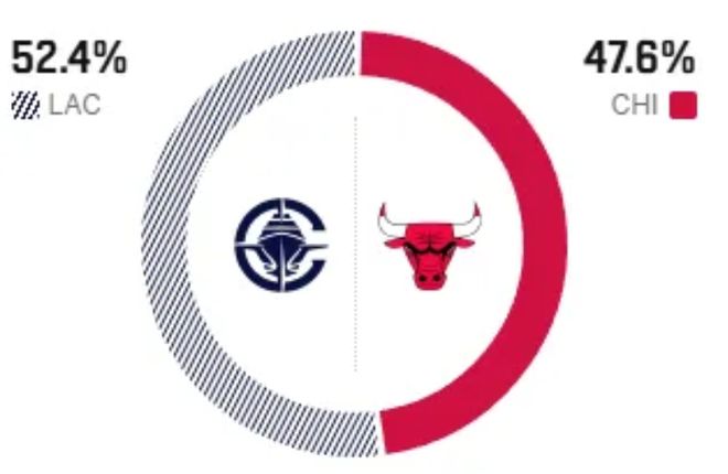 本場比賽是兩隊本賽季首次交鋒,在近10次交鋒中,快船7勝3負(fù),占據(jù)絕對優(yōu)勢。賽前,美媒ESPN對本場比賽進(jìn)行了勝率預(yù)測,快船隊勝率為52.4%,公牛勝率則為47.6% ,算是平分秋色。