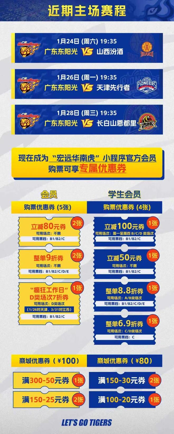 1月24日,CBA常規(guī)賽第19輪,廣東東陽(yáng)光將在主場(chǎng)迎戰(zhàn)山西汾酒男籃。兩隊(duì)在第7輪有過(guò)一次碰面,華南虎客場(chǎng)以95-89擊敗對(duì)手。