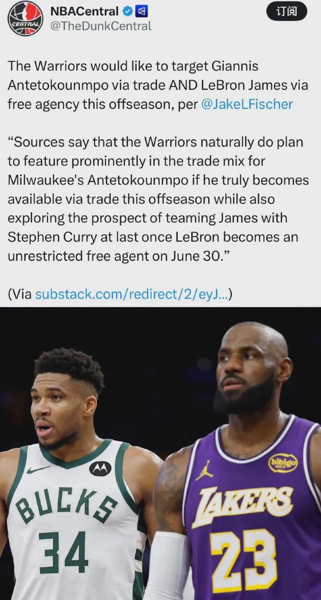 名記Fischer:勇士計(jì)劃今年夏天交易來字母哥,并在自由市場簽下詹姆斯......