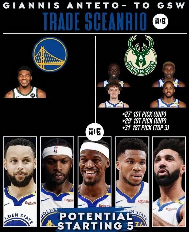 之前有美媒建議勇士打包送出追夢格林+庫明加+波杰姆斯基+穆迪+3個首輪簽,也許就能打動雄鹿管理層挖來希臘怪獸。