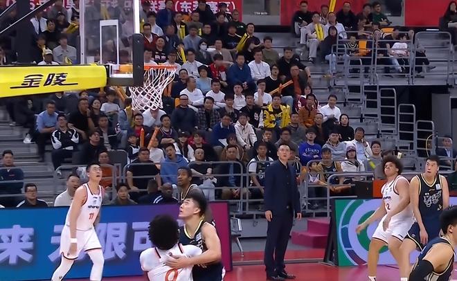 次節(jié)3分鐘左右,古德溫一對(duì)一背打張皓嘉,在出手的一瞬間古德溫與張皓嘉發(fā)生肢體接觸后倒地,理論上這是一個(gè)A點(diǎn)到B點(diǎn)的投籃犯規(guī),但是裁判沒有做出吹罰。
