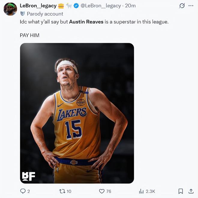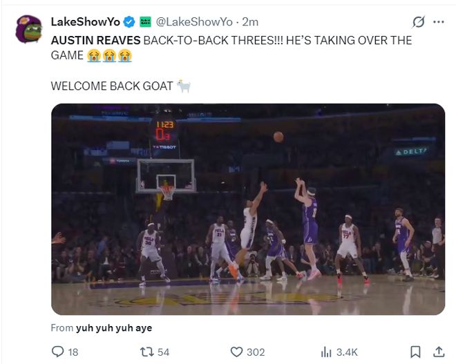奧斯汀-里夫斯實(shí)在是太出色了,末節(jié)開場湖人還在落后,但在短短1分06秒的時(shí)間里里夫斯一人打出了8-0的攻勢直接幫助湖人反超,湖人隊(duì)記邁克-特魯戴爾都覺得不可思議。