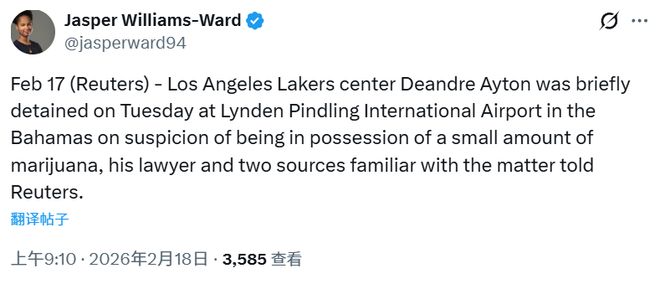 盡管巴哈馬已立法允許醫(yī)療及宗教用途的大麻使用,但娛樂用大麻在該國仍屬非法。這位前NBA狀元秀于去年夏天與湖人簽下一份兩年合同,此前曾效力于菲尼克斯太陽與波特蘭開拓者。他上周五已連續(xù)缺席湖人的第二場(chǎng)比賽。