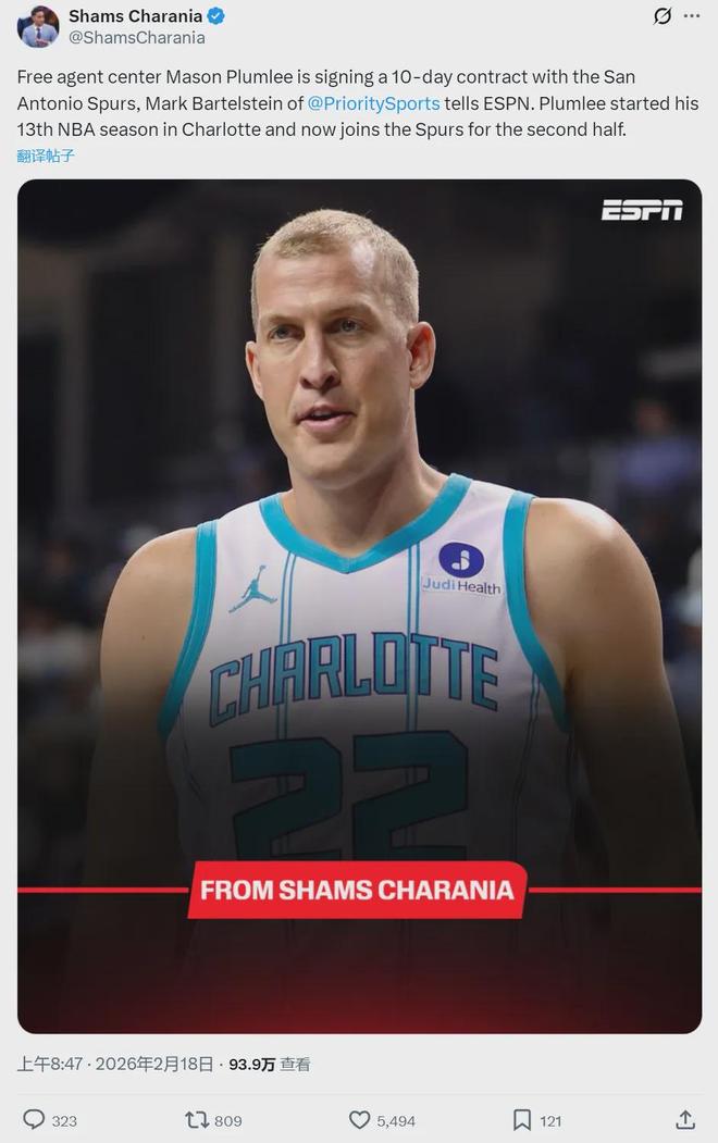 北京時間2月18日,據(jù)NBA名記Shams報道,中鋒梅森-普拉姆利跟馬刺簽下一份10天合同。今年交易截止日之前,黃蜂把普拉姆利送到雷霆,1換2交易得到奧斯曼-吉昂和1個次輪簽。為了給魔仙哥騰名額,雷霆很快裁掉普拉姆利。
