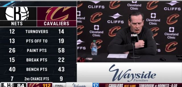 下半場哈登再次靠傳球帶動球隊,內(nèi)線莫布里和阿倫持續(xù)吃餅護框,騎士領(lǐng)先達到40分。哈登再也不用像快船時那樣被狠槽,他竟然提前打卡下班了。全場騎士7人得分上雙,簡直是完美的團隊籃球。米切爾17分,哈登16分5板9助3斷,阿倫15分10板,莫布里復(fù)出拿10分9板,施羅德12分3助,泰森11分,韋德11分5板。其中首發(fā)正負值方面,哈登+25,米切爾+37,阿倫+31,莫布里+20,韋德+28。
