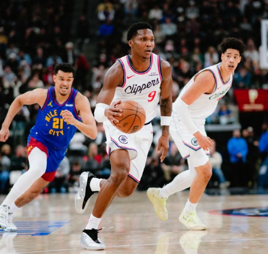 次節(jié)比賽,雙方連續(xù)兩節(jié)單節(jié)得分不足30分,雙方纏斗至29-29,并在之后繼續(xù)維持37-37。布朗三分與暴扣接連得分,引領(lǐng)掘金一波8-2攻勢取得領(lǐng)先,斯特勞瑟也命中三分,快船逐步以41-49落后。科林斯中投得分,卡約三分命中,馬瑟林上籃得分,快船單節(jié)20-28輸?shù)?分,上半場結(jié)束快船45-52被掘金反超。前兩節(jié)比賽,掘金三分23中10,卡約10分、布朗17分與斯特勞瑟12分,約基奇9中2僅得到4+9+3與穆雷9中1僅得到3分;快船三分17中3,科林斯11+8與馬瑟林18分、萊昂納德11中4得到9分。