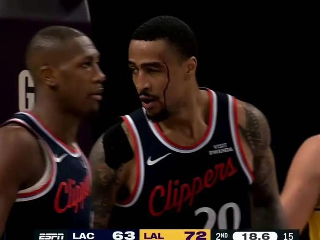 就在中場快結(jié)束時(shí),快船的追分出了意外