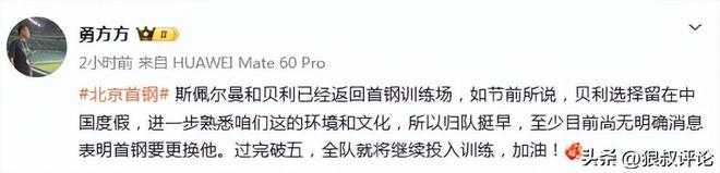 北京時(shí)間2月21日,根據(jù)北京記者勇方方的報(bào)道,“斯佩爾曼和貝利已經(jīng)返回首鋼訓(xùn)練場(chǎng),如節(jié)前所說(shuō),貝利選擇留在中國(guó)度假,進(jìn)一步熟悉咱們這的環(huán)境和文化,所以歸隊(duì)挺早,至少目前尚無(wú)明確消息表明首鋼要更換他。過(guò)完破五,全隊(duì)就將繼續(xù)投入訓(xùn)練,加油! ”