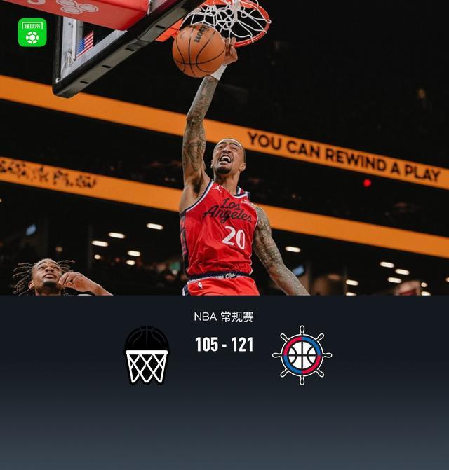 • 快船121-105輕取籃網(wǎng),哈登31+4+6,倫納德26分