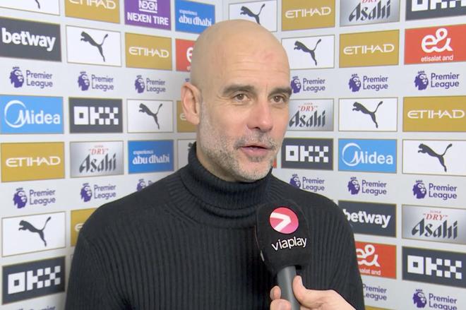 英超第21輪,曼城主場(chǎng)1-1戰(zhàn)平布萊頓,賽后,曼城主帥瓜迪奧拉接受了Viaplay Fotball的采訪。