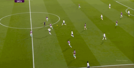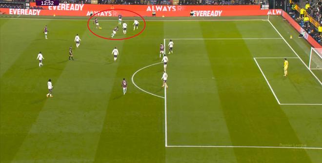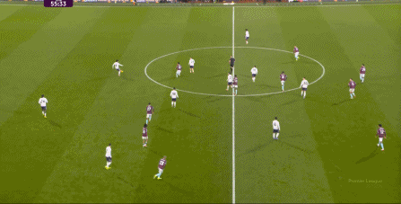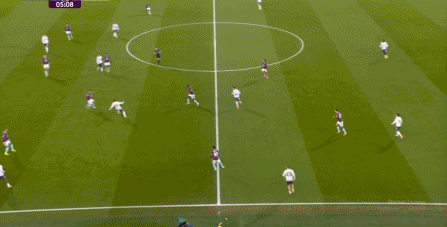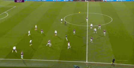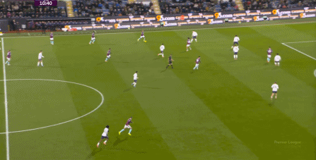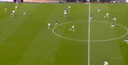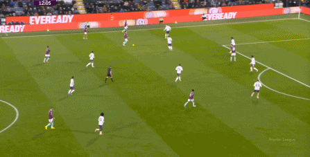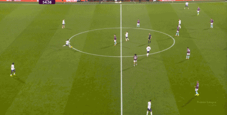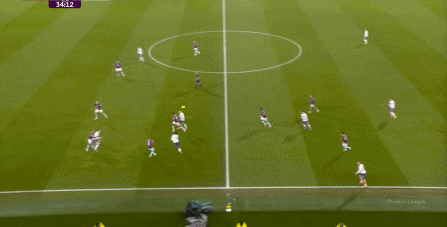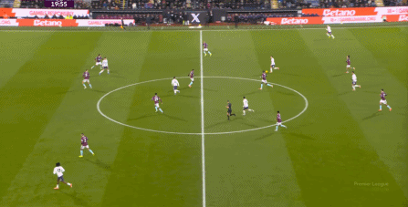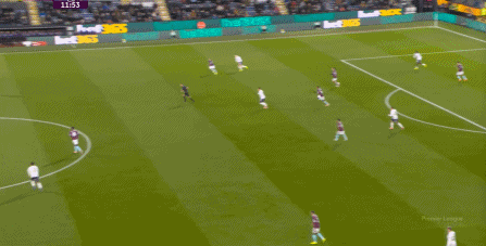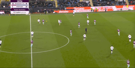 而且,攻轉(zhuǎn)守的邏輯也重新發(fā)生了變化,比如這次謝什科沒有接好球,立刻被伯恩利發(fā)展到邊路,于是你可以看到,中場(chǎng)、右中衛(wèi)和右后衛(wèi)需要形成三人之間的輪轉(zhuǎn):