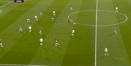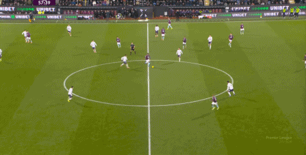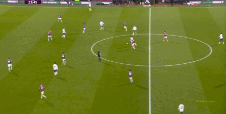 除此之外,另一個(gè)讓我們恍如隔世的畫面,便是對(duì)手可以輕而易舉地完成了在曼聯(lián)中場(chǎng)線高度上的橫移操作,這也是索肖和滕哈赫時(shí)期的常見畫面了: