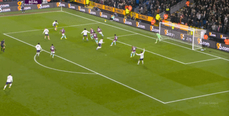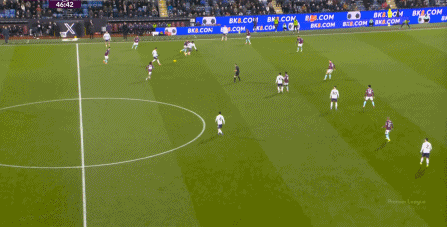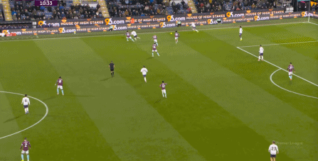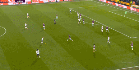 為數(shù)不多打穿肋部的好機(jī)會(huì),還需要布魯諾指揮多爾古去跑位: