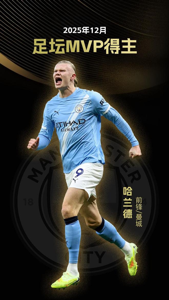 經(jīng)過(guò)球迷投票,哈蘭德力壓凱恩當(dāng)選12月MVP,佩德里排名第三。