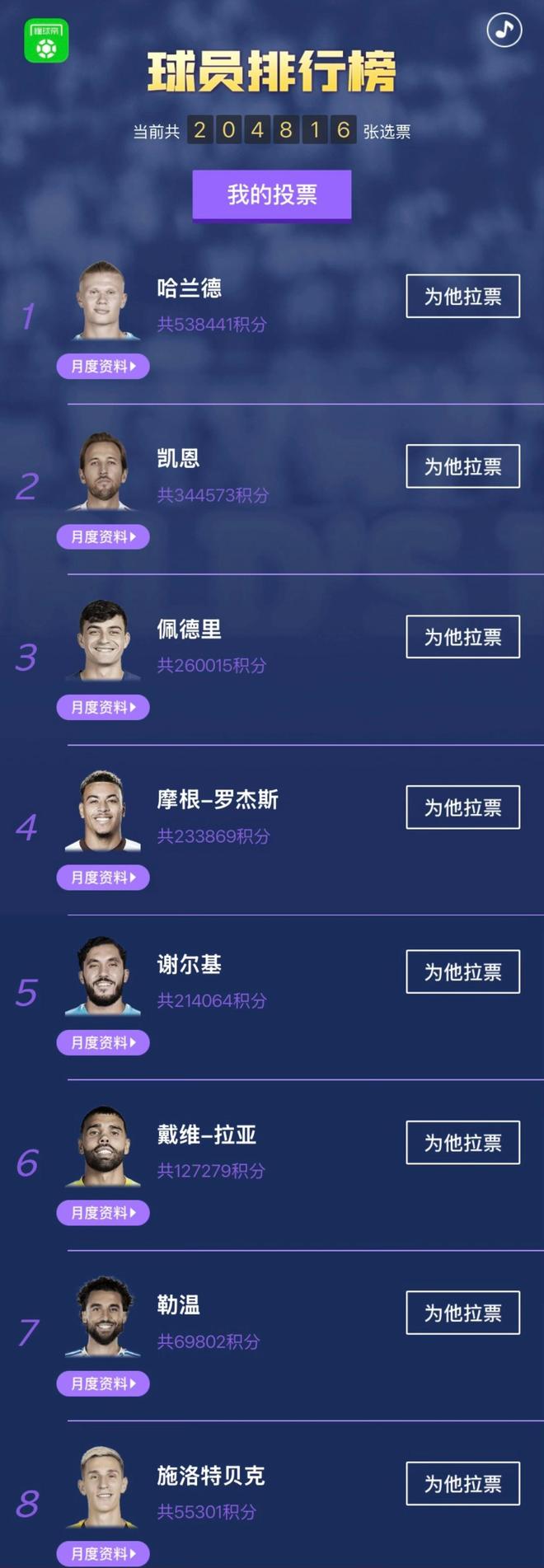 球迷朋友們大家好,歡迎來(lái)到懂球帝國(guó)際足壇12月月度MVP評(píng)選。經(jīng)過(guò)球迷投票,連續(xù)四期入圍候選的哈蘭德成功蟬聯(lián),凱恩本賽季三次入圍候選均排名第二。