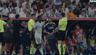 全場(chǎng)比賽結(jié)束,皇馬2-1淘汰馬競。維尼修斯并未離場(chǎng),而是等待西蒙尼。在80分鐘被換下時(shí),維尼修斯就與西蒙尼約架:比賽結(jié)束后,再見面聊聊。當(dāng)然,這種約架只是氣勢(shì)上的,雙方都很清楚,真正的沖突不可能發(fā)生。