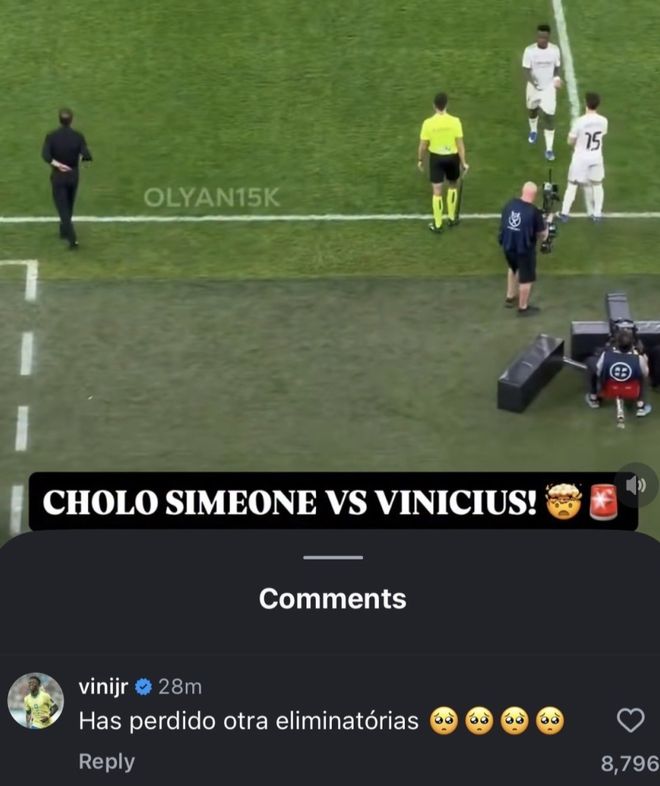 繼亞馬爾后,維尼修斯這次又與西蒙尼結(jié)下梁子。