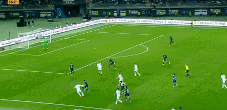 第90+4分鐘,巴黎打反擊,維蒂尼亞中場長傳,巴爾科拉前插到禁區(qū)左側(cè)頭球擺渡,貢薩洛·拉莫斯跟進(jìn)凌空抽射破門。