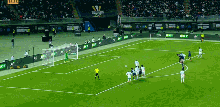第2分鐘,貝林厄姆前場推進(jìn)被犯規(guī),皇馬獲得前場定位球機(jī)會,巴爾韋德主罰選擇直接打門,遠(yuǎn)距離助跑后轟出超級世界波,皇馬1比0打出夢幻開局。