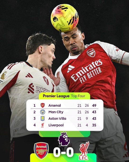 北京時(shí)間1月9日04:00,英超聯(lián)賽第21輪,阿森納坐鎮(zhèn)酋長(zhǎng)球場(chǎng)迎戰(zhàn)利物浦。上半場(chǎng)布拉德利中橫梁,利物浦0射正,兩隊(duì)暫0-0戰(zhàn)平;下半場(chǎng)因卡皮耶傷退,最終阿森納0-0利物浦,5連勝遭終結(jié),6分領(lǐng)跑積分榜。