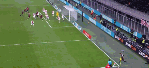 第90+2分鐘,扳平比分,萊奧頭槌完成絕平,米蘭1-1